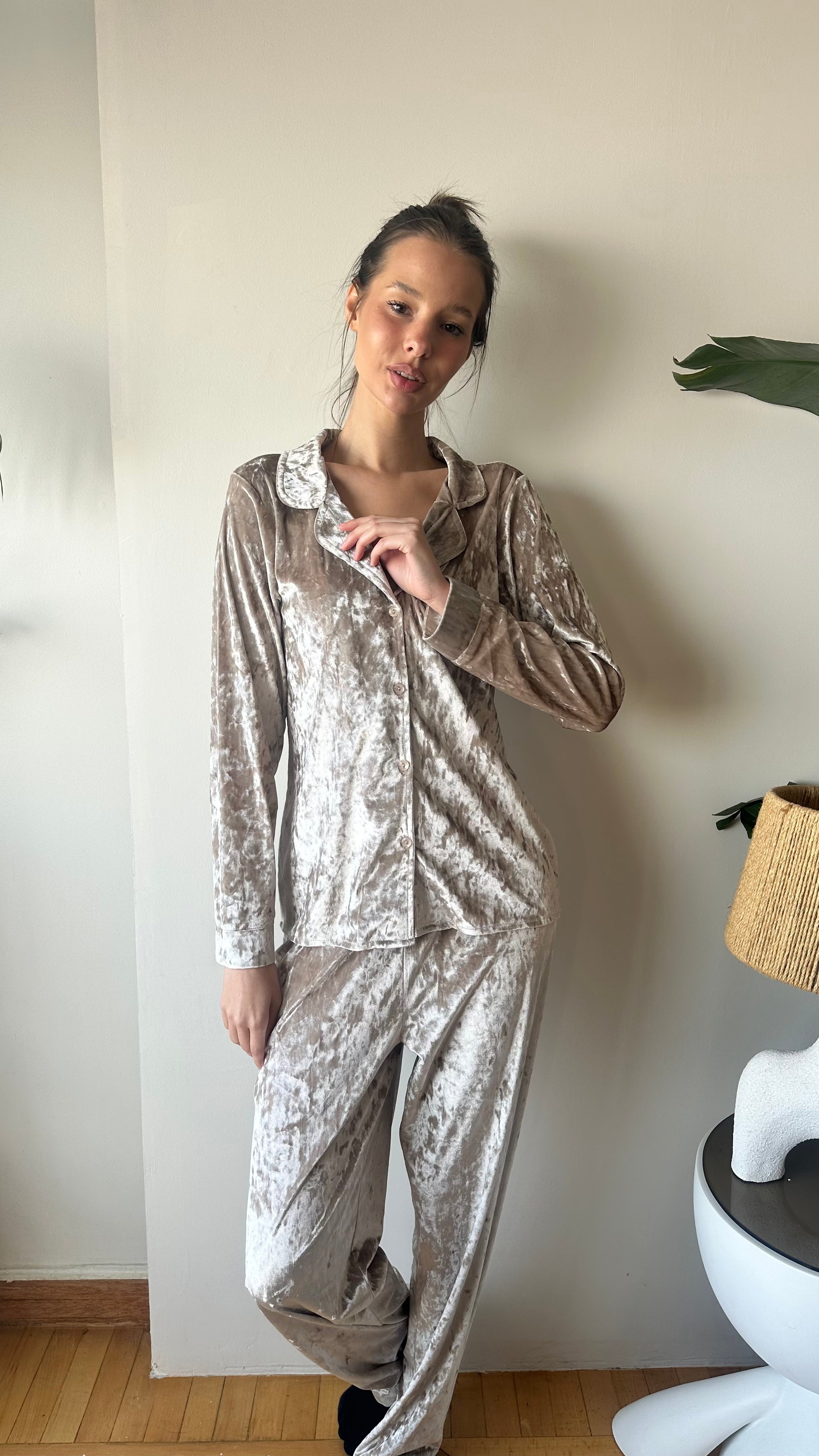 "Pure serenity in every fiber. This light beige marble French velvet set is designed for those who appreciate 'Quiet Luxury'. It’s clean, calming, and exceptionally soft against the skin."