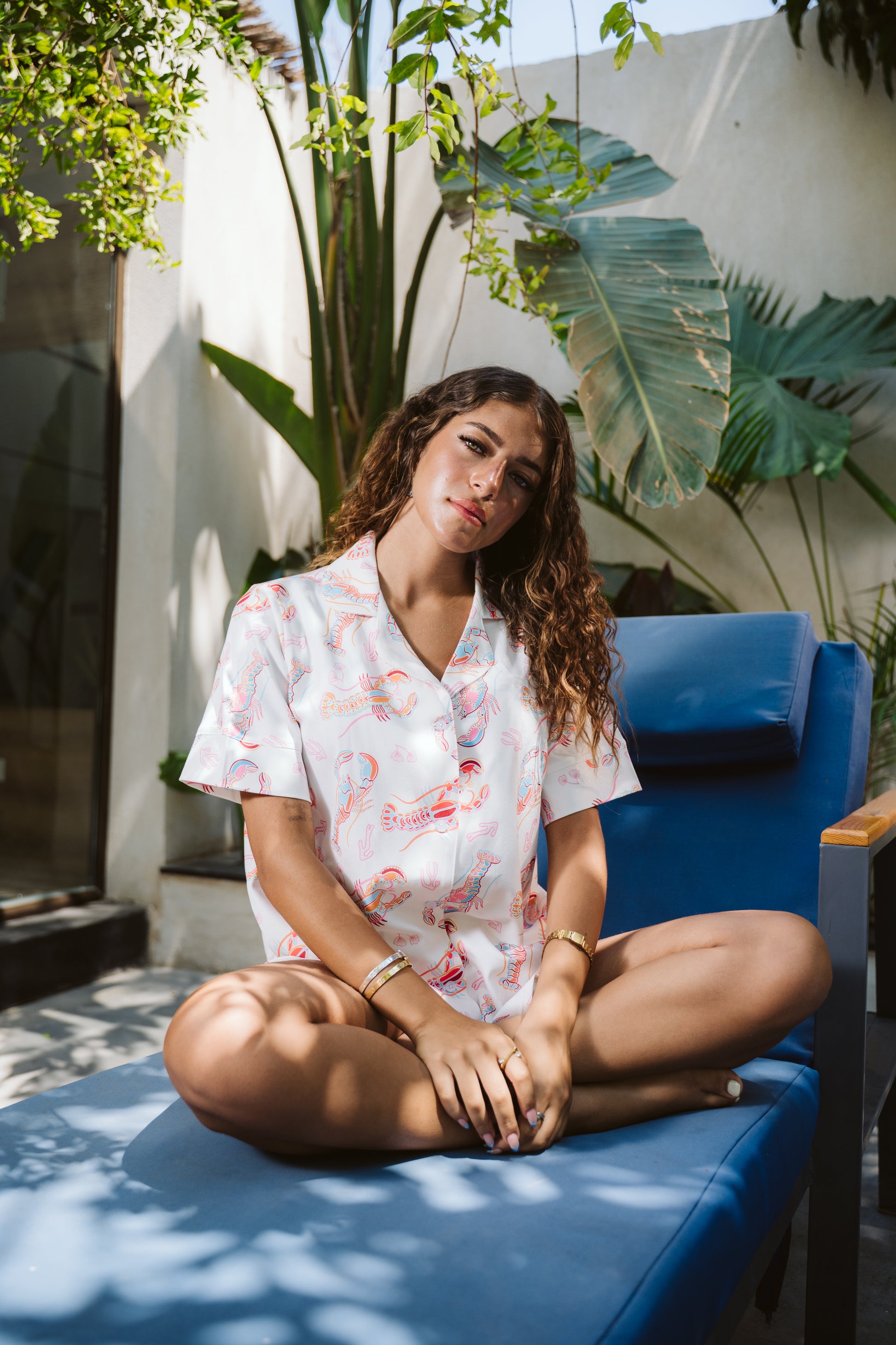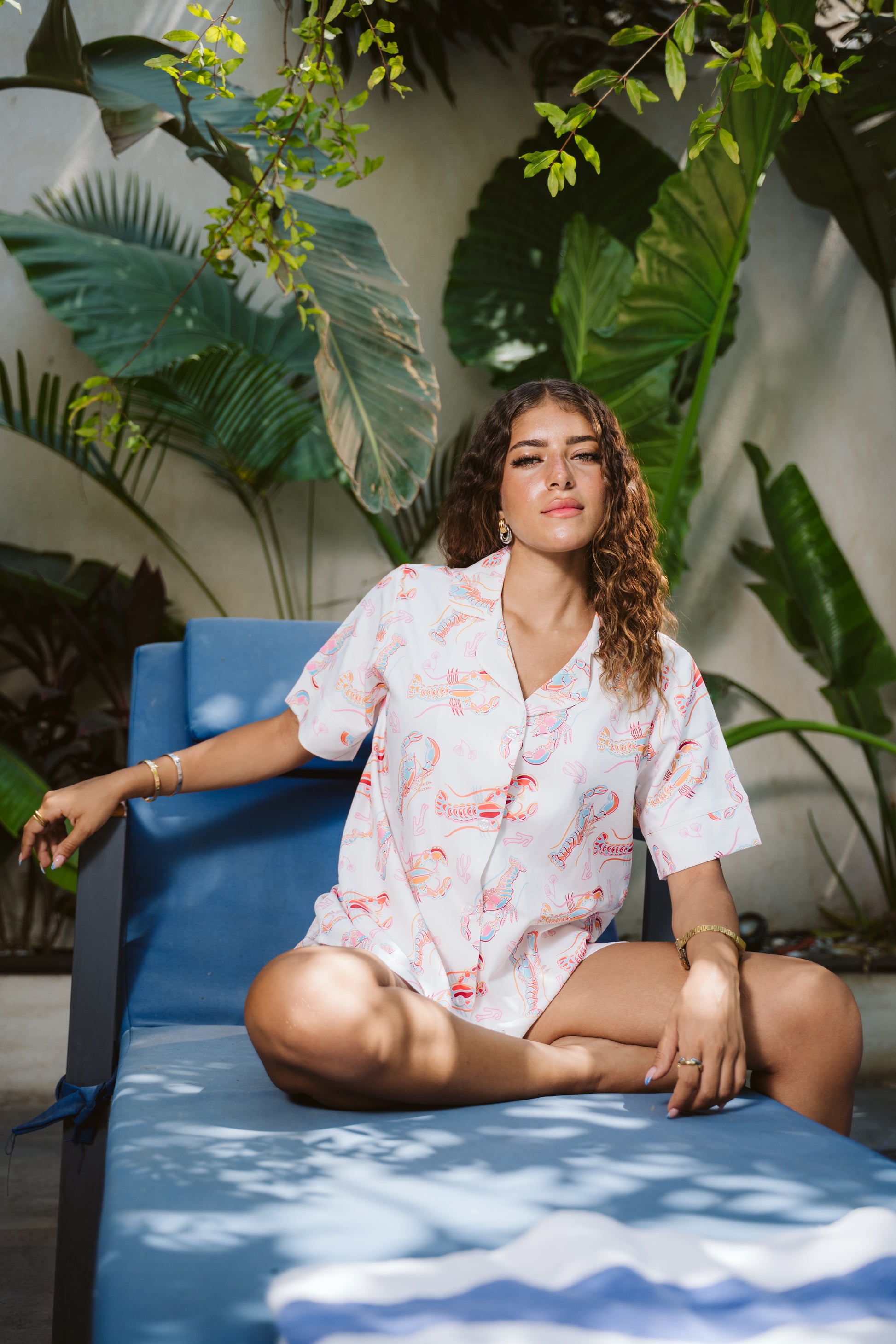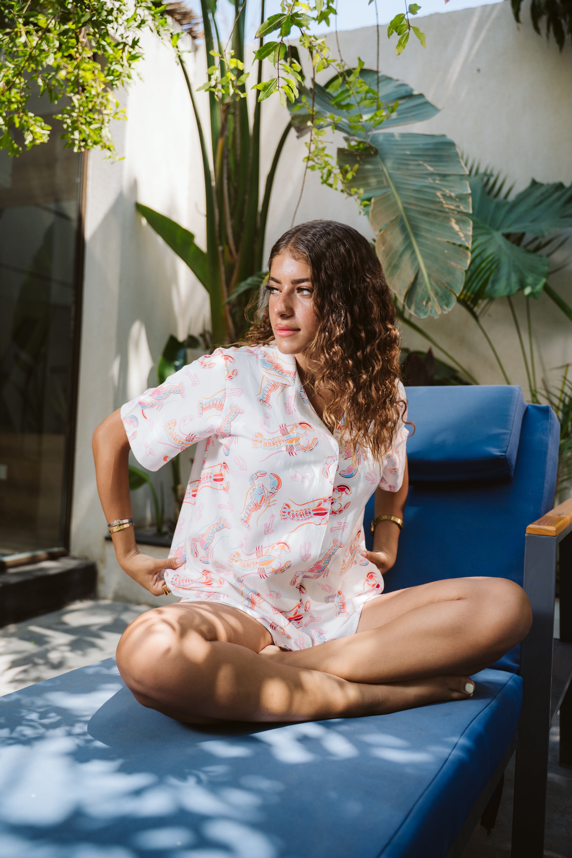 Embrace coastal elegance with this luxurious satin pajama set featuring a charming seafood print. Crafted for the sophisticated woman who appreciates